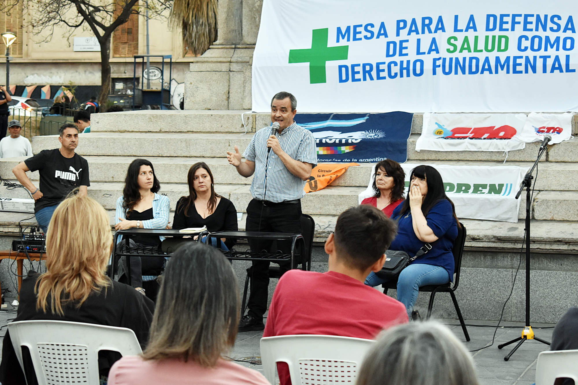 El martes 24 de septiembre participamos en el conversatorio público organizado por la Mesa para la Defensa de la Salud como Derecho Fundamental. El evento se llevó a cabo en la Plaza Vélez Sarsfield con las disertaciones del Dr. Oscar Atienza, la Dra. Florencia Dahbar y la Dra. Glenda Henze, quienes analizaron la crisis sanitaria que atraviesa nuestro país debido